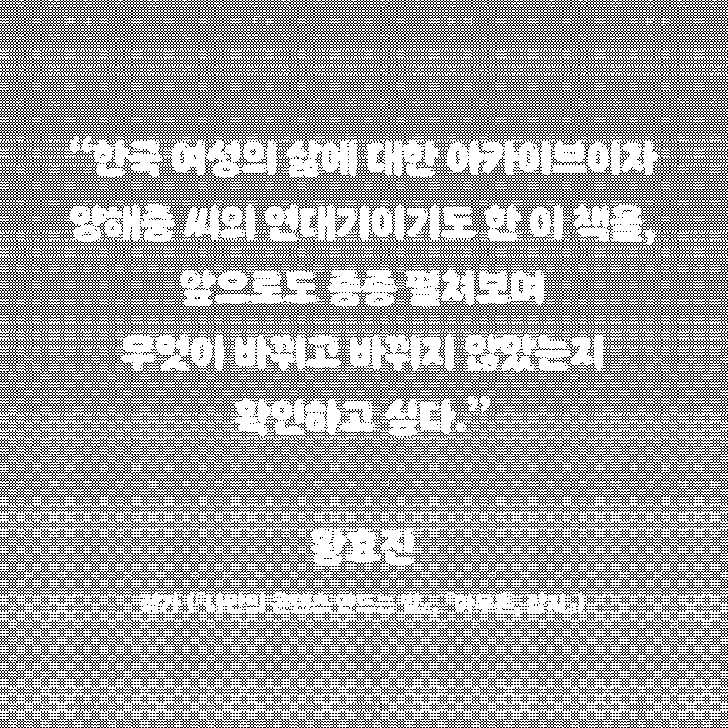 한국 여성의 삶에 대한 아카이브 : 추천사 (황효진)
